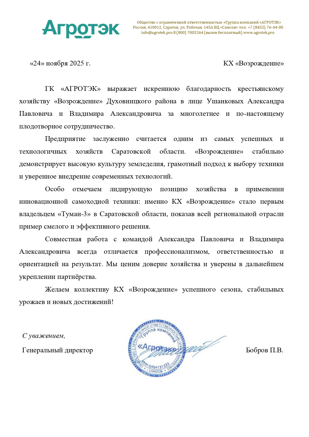 Современный и регулярно обновляемый парк техники позволяет нам вовремя проводить все полевые работы, сокращать потери при уборке, качественно дорабатывать зерно и самое главное — соблюдать сроки и объёмы отгрузки для клиентов.
